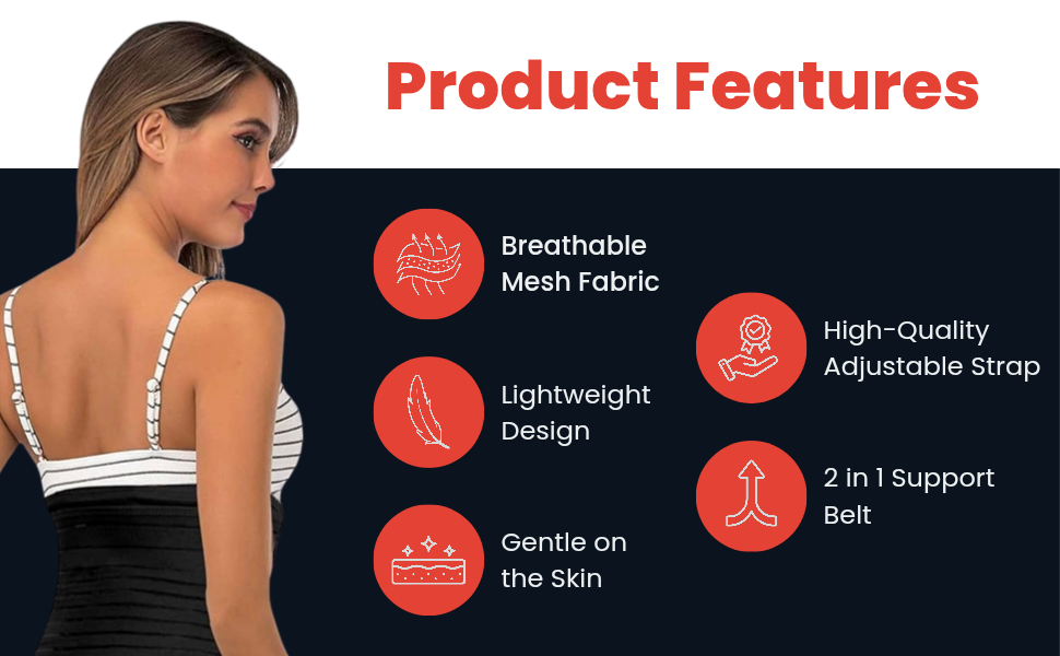 - Improves posture while breastfeeding and caring for your baby