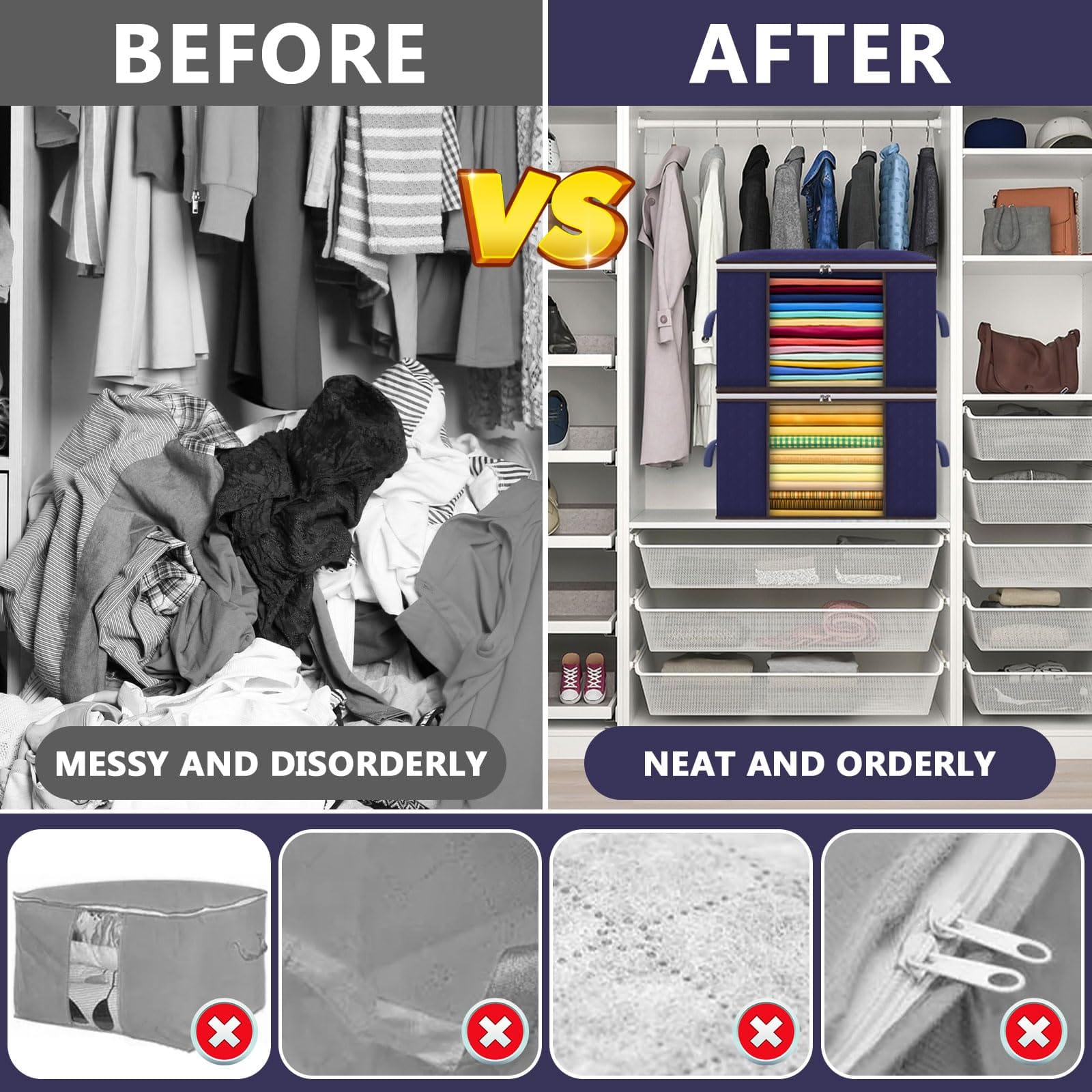 100% Safe for All Items - Won't damage expensive clothes or important items. Stronger than normal cloth storage boxes.
